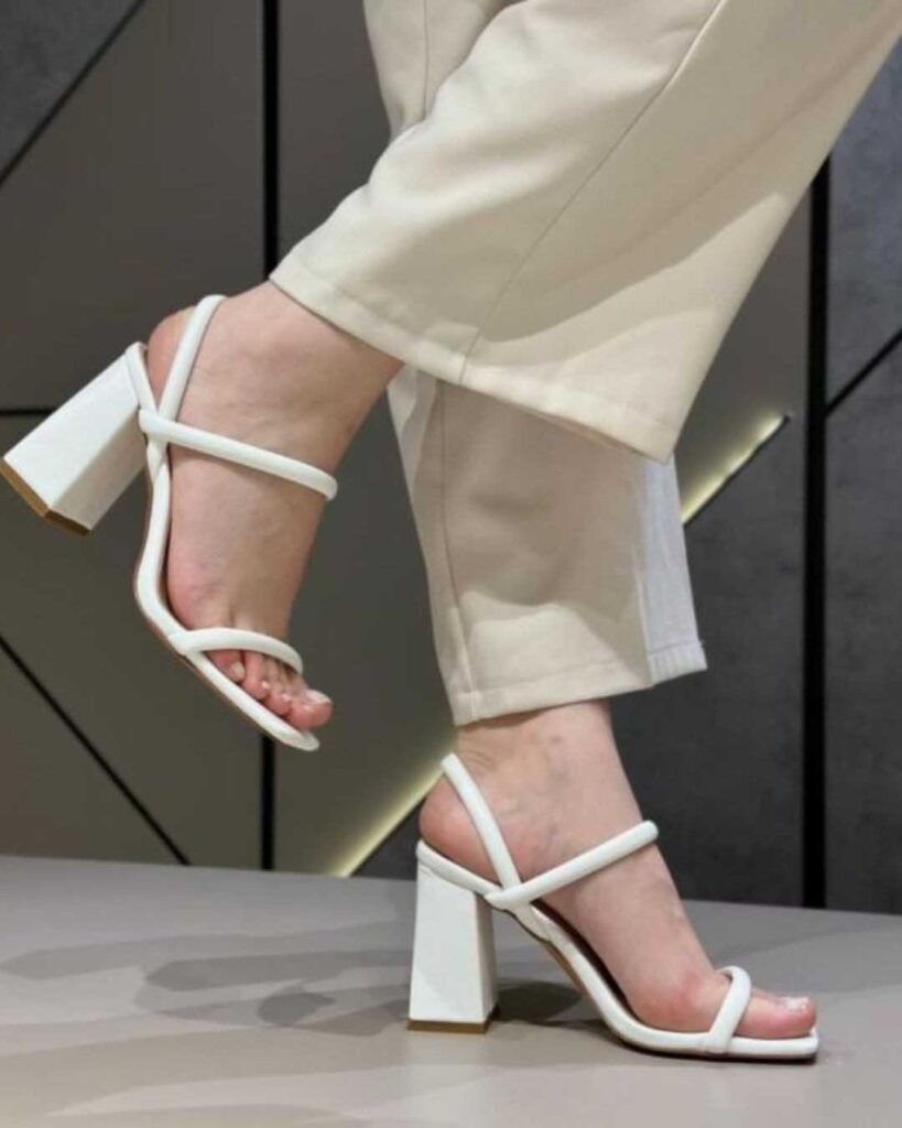 These chic white block heels keep it clean and minimal with their smooth white finish and soft straps. They give the same fresh vibe you get from nude heels but with a brighter twist. The design feels light and easy, perfect for leveling up simple outfits without trying too hard.