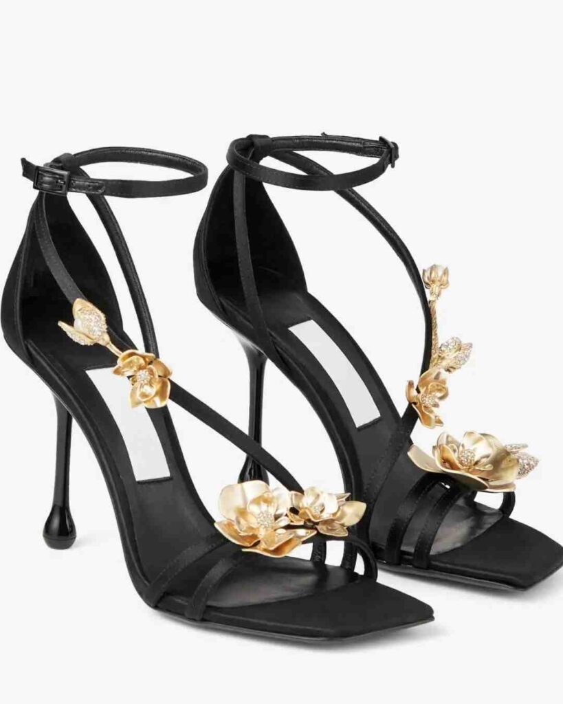 These luxe black stilettos bring a bold mix of elegance and edge with their sleek black finish and standout gold floral accents. The design feels artistic and upscale, making them a perfect pick for nights when you want your heels to do all the talking. Even though they aren’t nude heels, the black-and-gold combo stays timeless and easy to style.